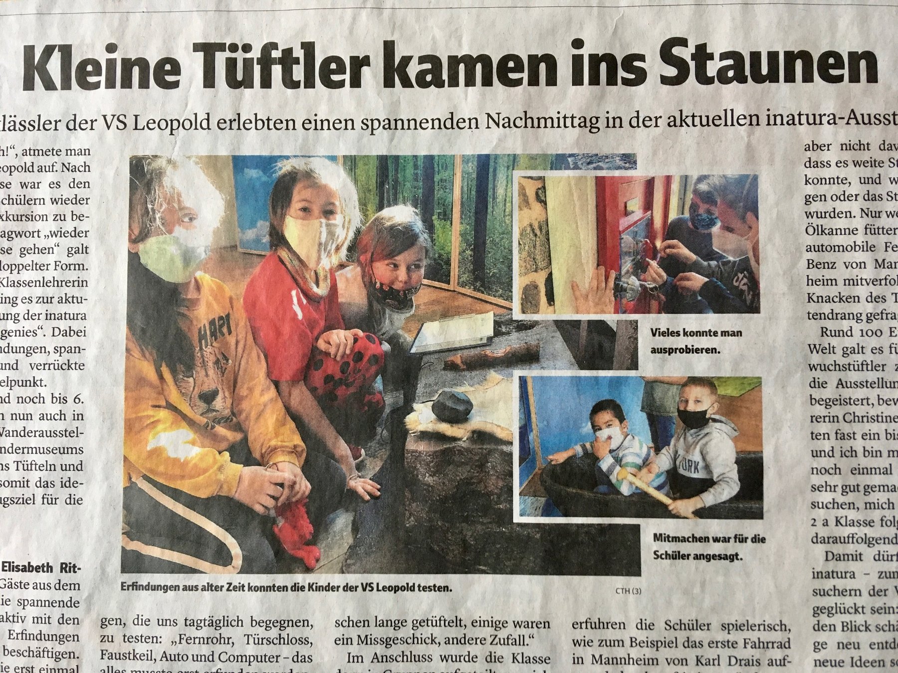 Damit dürfte die Mission der inatura - zumindest bei den Besuchern der VS Leopold - perfekt geglückt sein: ,,Neugierde wecken, den Blick schärfen, alltägliche Dinge neu entdecken und Platz für neue Ideen schaffen." Die Sonderausstellung ,,Tüftelgenies" kann täglich, Montag bis Sonntag von 10 bis 18 Uhr besucht werden. CTH